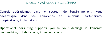 Il s'adresse aux entreprises qui souhaitent collaborer ou investir en Roumanie dans le Green business: